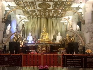Après un déjeuner sur le pouce, mérité, nous allons visiter le célèbre Temple de la Dent qui abrite la relique sacrée de la dent du Bouddha. Selon la légende, celle-ci aurait été dérobée sur le bûcher funéraire du Bouddha puis introduite clandestinement dans les cheveux d’une princesse. A l’intérieur le temple surprend par sa simplicité et sa taille modeste. La dent est elle-même emboîtée à l’intérieur de 7 cassettes comme les poupées russes, mais nous ne la verrons pas.